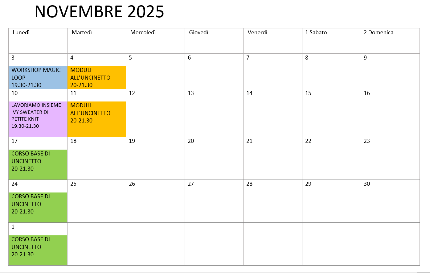 da lunedรฌ 17 novembre ore 20-21.30