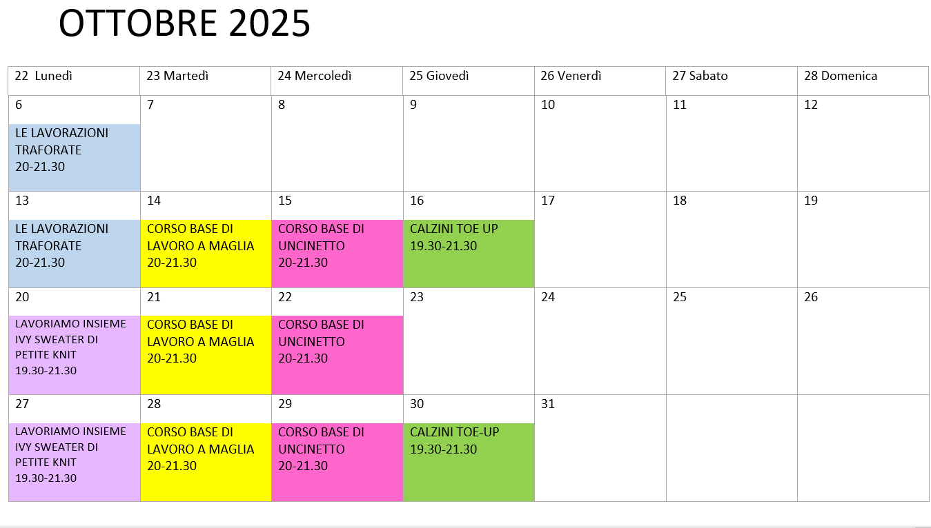 da lunedรฌ 6 ottobre ore 20-21.30