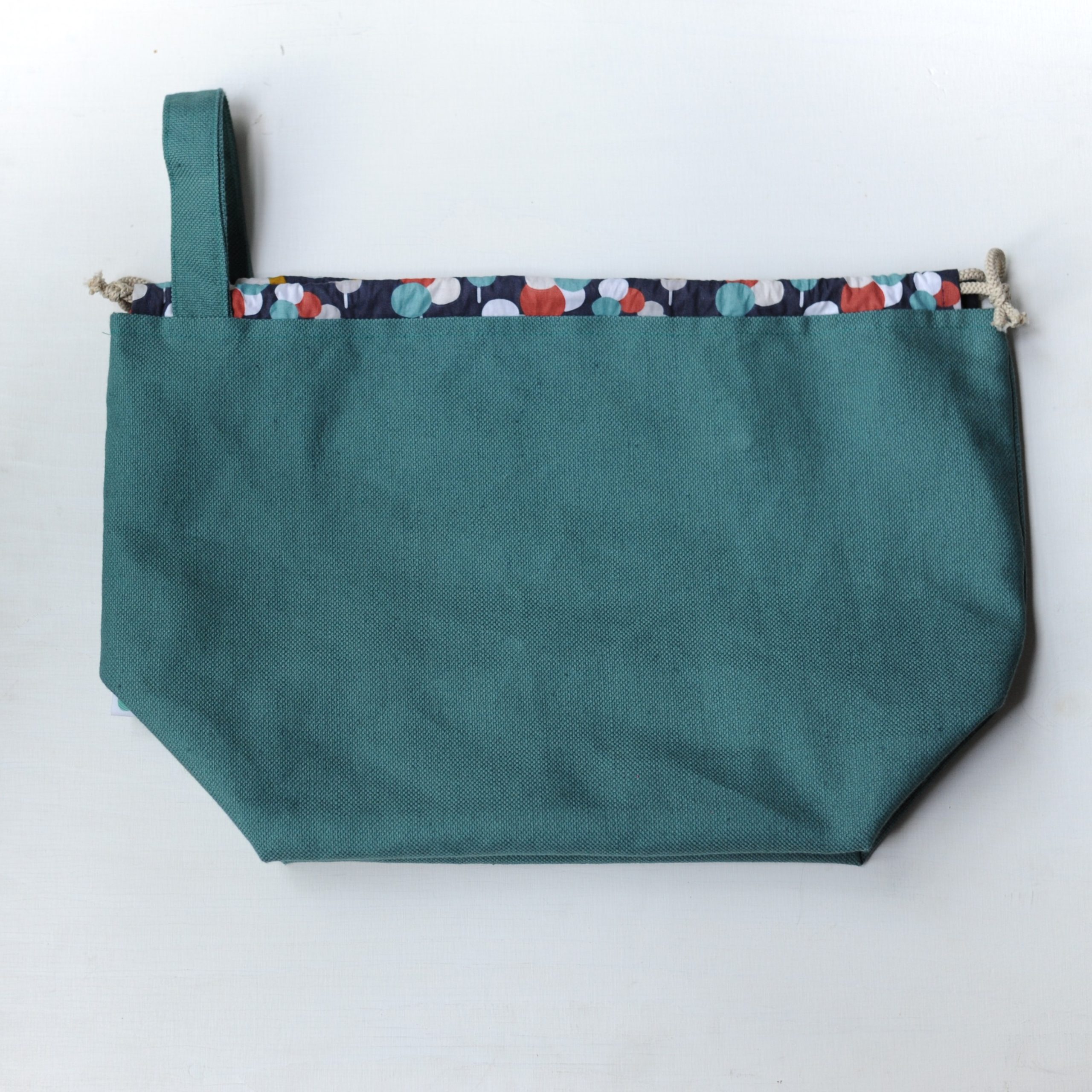 Borsa porta-lavoro in tessuto realizzata da Atelier della Lana. La fodera interna รจ in cotone e ha 2 tasche. Si chiude con la coulisse e ha una comodo manico per trasportarla. Perfetta per portare sempre con te il tuo lavoro a maglia e uncinetto.